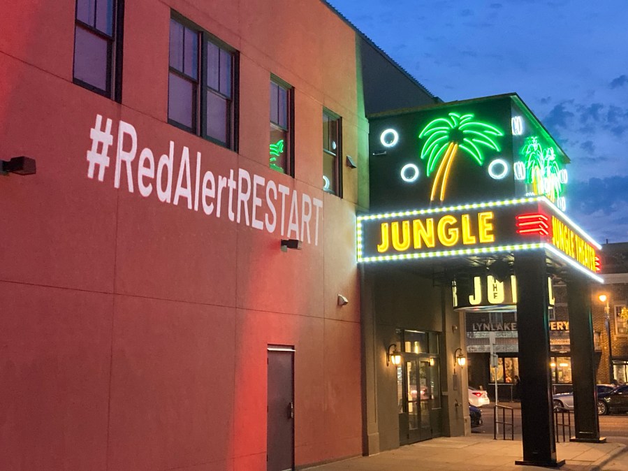 #RedAlertRESTART, a nationwide event on September 1, 2020 was to raise visibility of the live events industry in order to encourage the US Senate to pass the RESTART Act and to extend Pandemic Unemployment Assistance (PUA) benefits. Hundreds of Minnesotans came together to light up nearly 100 buildings in the state with red lights and event-specific gobos.