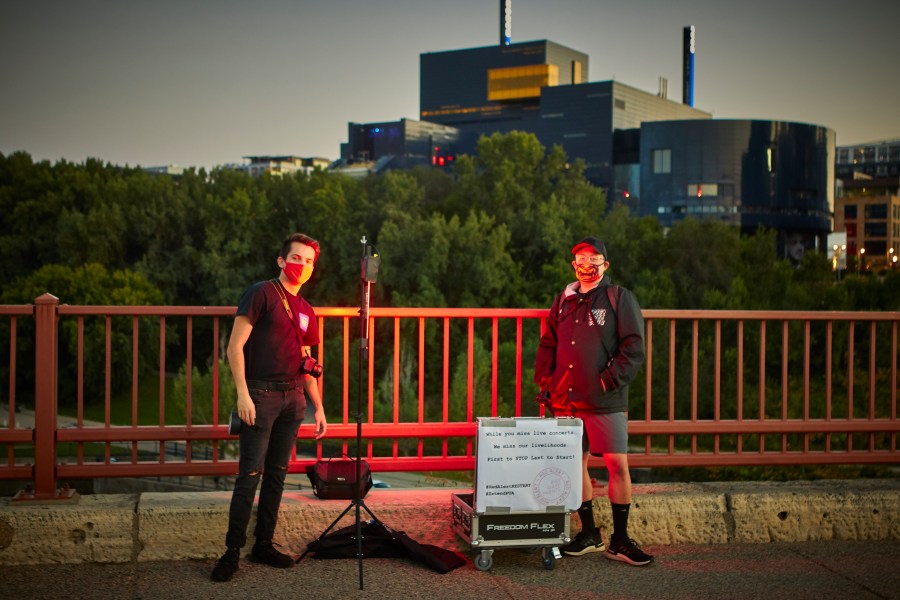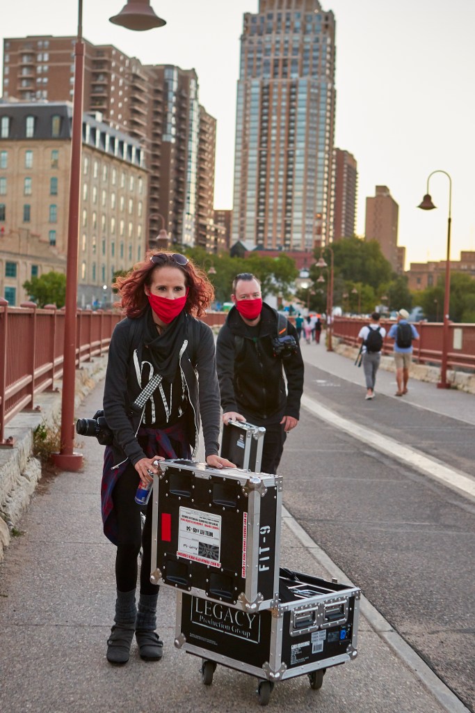 The largest gathering of resources was at the Stone Arch Bridge in Minneapolis. It was made possible by the efforts of about four-dozen technicians from a variety of backgrounds: corporate production, theater, IATSE, and more. Many haven’t been able to work in months. A whole industry in the same sinking boat, even competing production companies were coming together to donate their skills and equipment for the evening.
